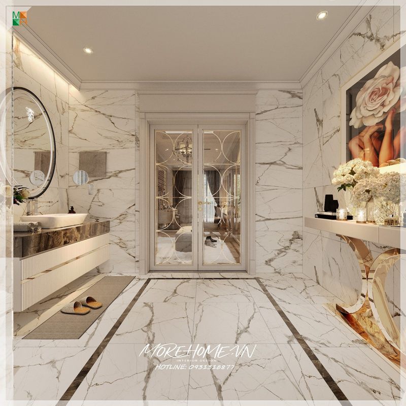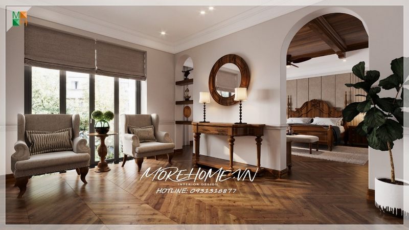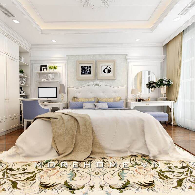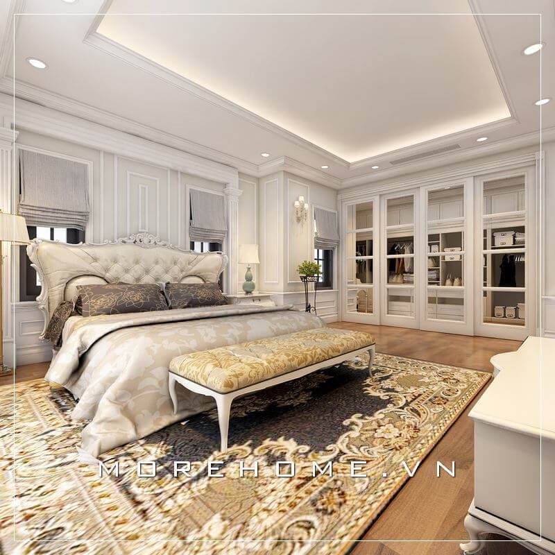 Nội thất phòng ngủ Master tân cổ điển ấn tượng, từng đường nét chạm khắc cầu kỳ, tinh xảo tạo nên vẻ đẹp thu hút bất kì một ánh nhìn nào