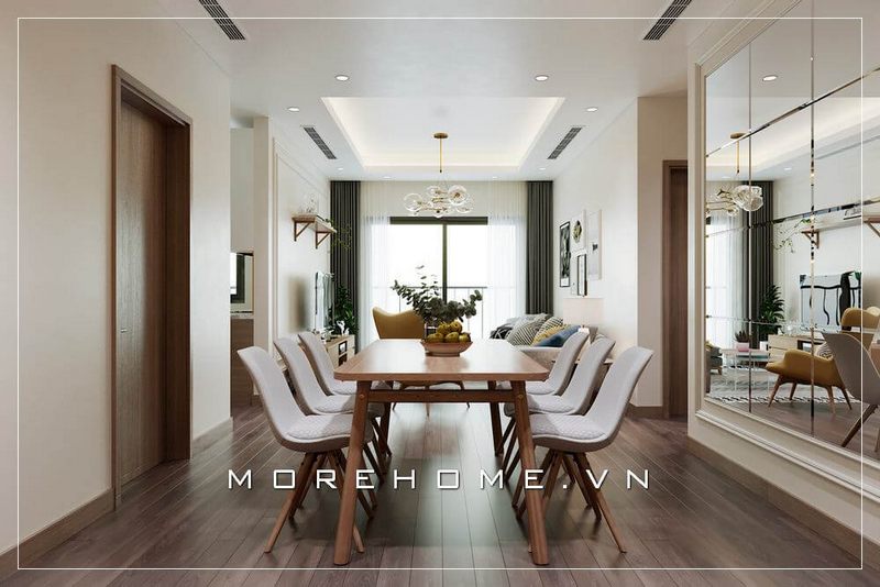 Lựa chọn màu sắc bàn ghế phòng ăn chung cư cũng phải hết sức tinh tế và hài hòa.