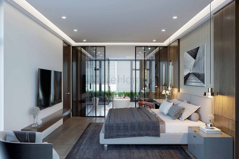 Thi công phòng ngủ nhà phố, biệt thự nội thất được sắp xếp phân chia theo từng khu vực đáp ứng tốt cho quá trình sử dụng hằng ngày của gia chủ