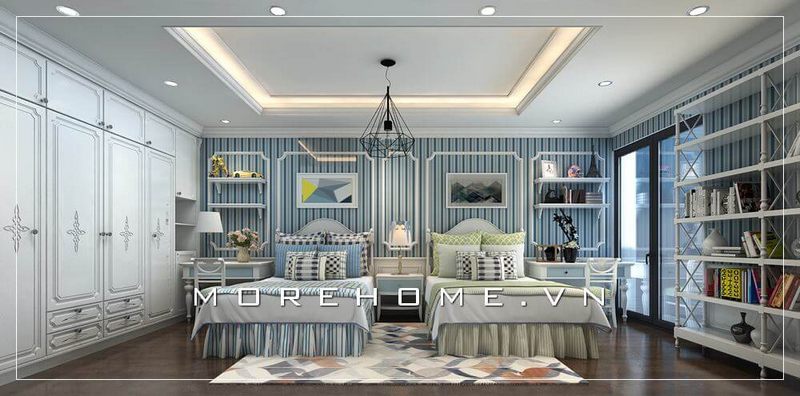 Gợi ý mẫu thiết kế nội thất phòng ngủ cho 2 bé sinh đôi tại biệt thự cao cấp phong cách tân cổ điển